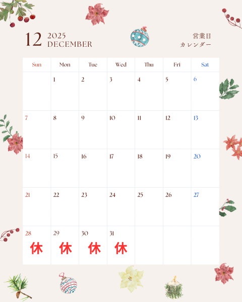 12月 営業日のお知らせ 練馬の整体、KINMAQ整体院練馬院です😊 12月28日~1月4日は年末年始休業となります。 上記日時以外は通常営業となります✨ 【平日】10:00~20:00 【土・日・祝日】10:00~18:30